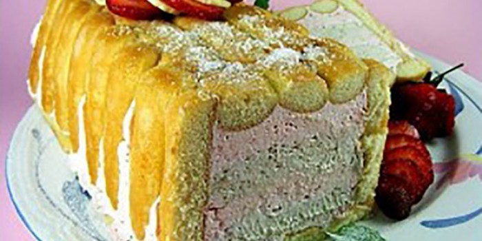 U hladno mleko umačite piškote i ređajte ih u duguljast kalup koji ste pre toga obložili sa rastegljivom folijom. Na dno stavite devet piškota, a za ređanje sa strane krojite ih i skraćujte zavisno od dubine i širine kalupa.
