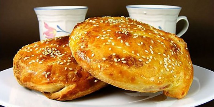 Svaki krug premažite umućenim žumancetom i mlekom, a onda prelijte 1 kašičicom rastopljenog margarina. Pospite susamom i ostavite 30 minuta na sobnoj temperaturi. Pecite u zagrejanoj rerni na 200 °C oko 15 minuta. Kada je pečeno, pokrijte čistom krpom i ostavite desetak minuta da se prohladi.